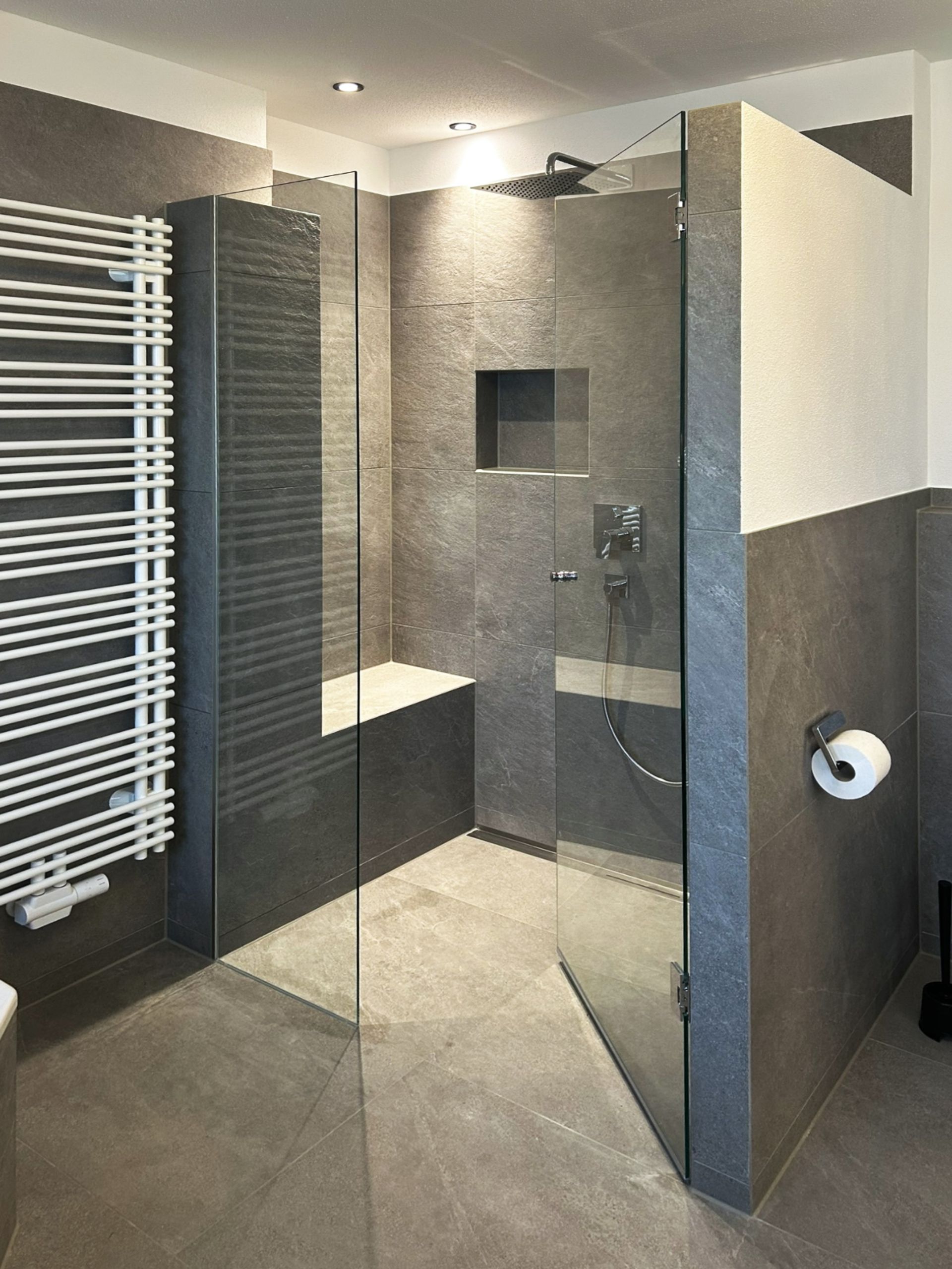 Wir fertigen Duschabtrennungen und Ganzglasduschen individuell nach Maß – ob für Nischen, Eckduschen oder Walk-in-Lösungen. Hochwertige Beschläge, pflegeleichte Glasoberflächen und millimetergenaue Montage sorgen für langlebige Funktionalität und modernes Design.